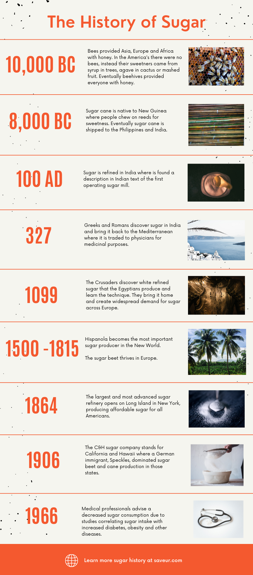 So where did sugar come from and how did it end up in so many food products today? More importantly what has this monster done to the health of our society? In 100 A.D. The Sugar Monster started rearing its ugly head in India when the first sugar mills started processing sugar cane. Although sugar had been a known sweetener since 10,000 B.C. when bees were kept to produce honey, it was never a health threat until consumption was increased by adding refined sugar to the diet. (1)